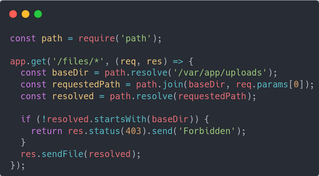 If you expect to receive the name of a resource that resides in the server’s local filesystem, it is important to know you may be vulnerable to path traversal attacks.