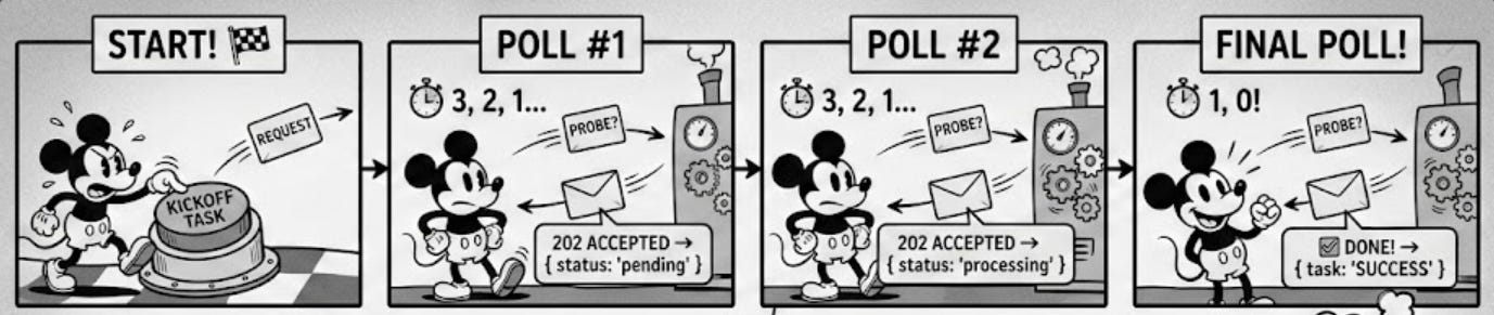 Then you establish a loop on the client side that continuously sends a request to check the status of the request.